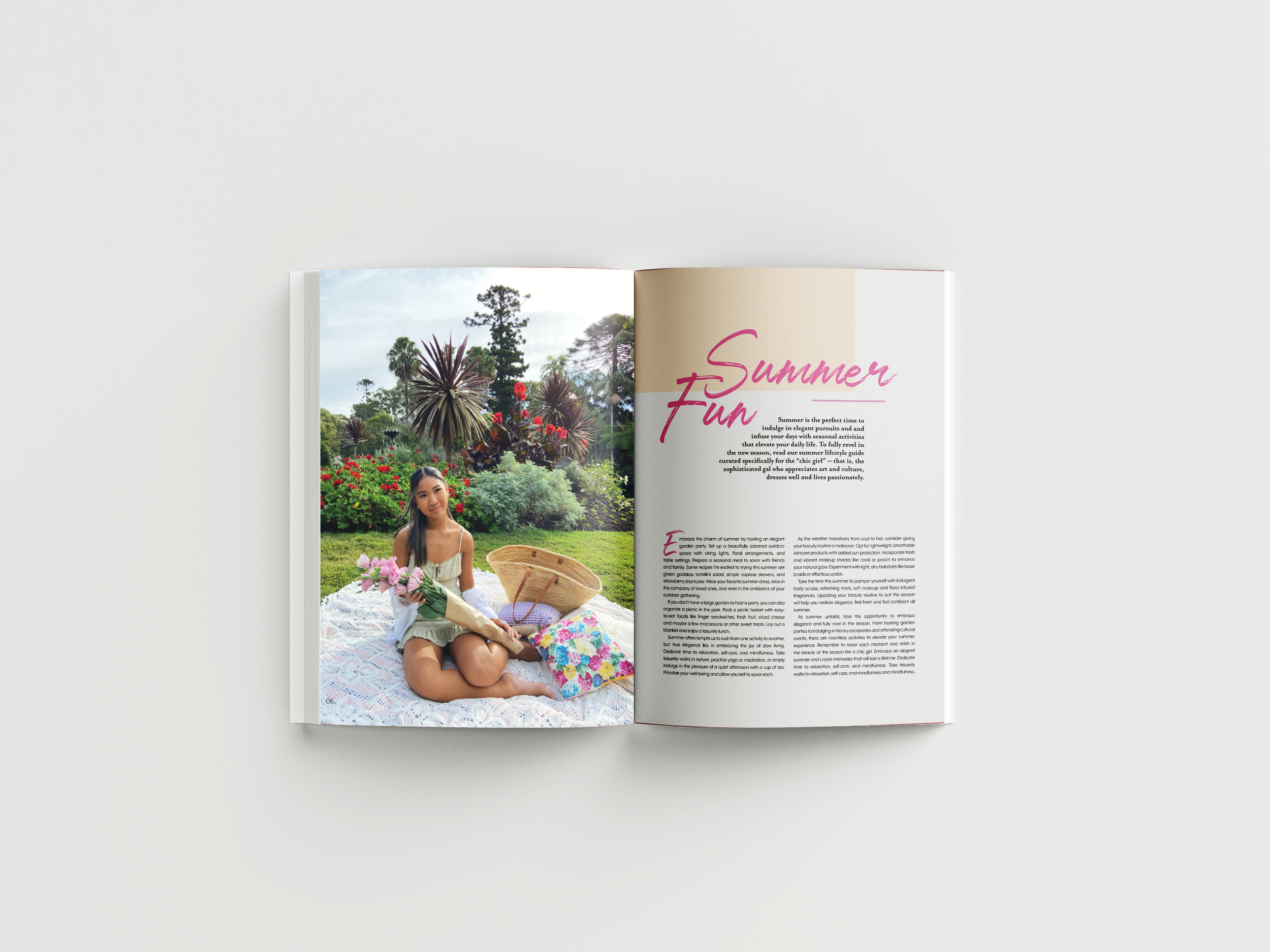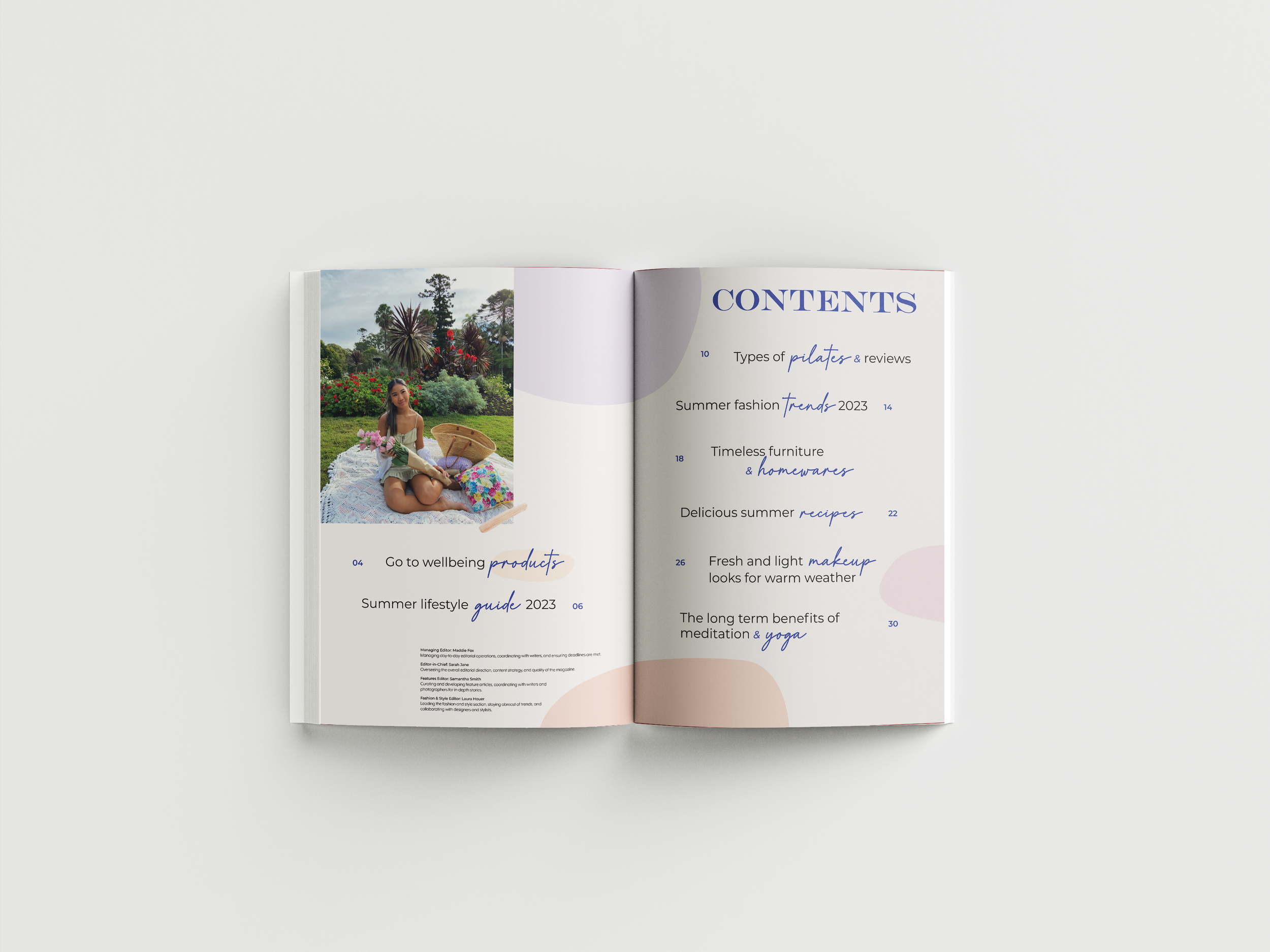 The visual style of the magazine is a clean, modern and feminine style with pastel colours.