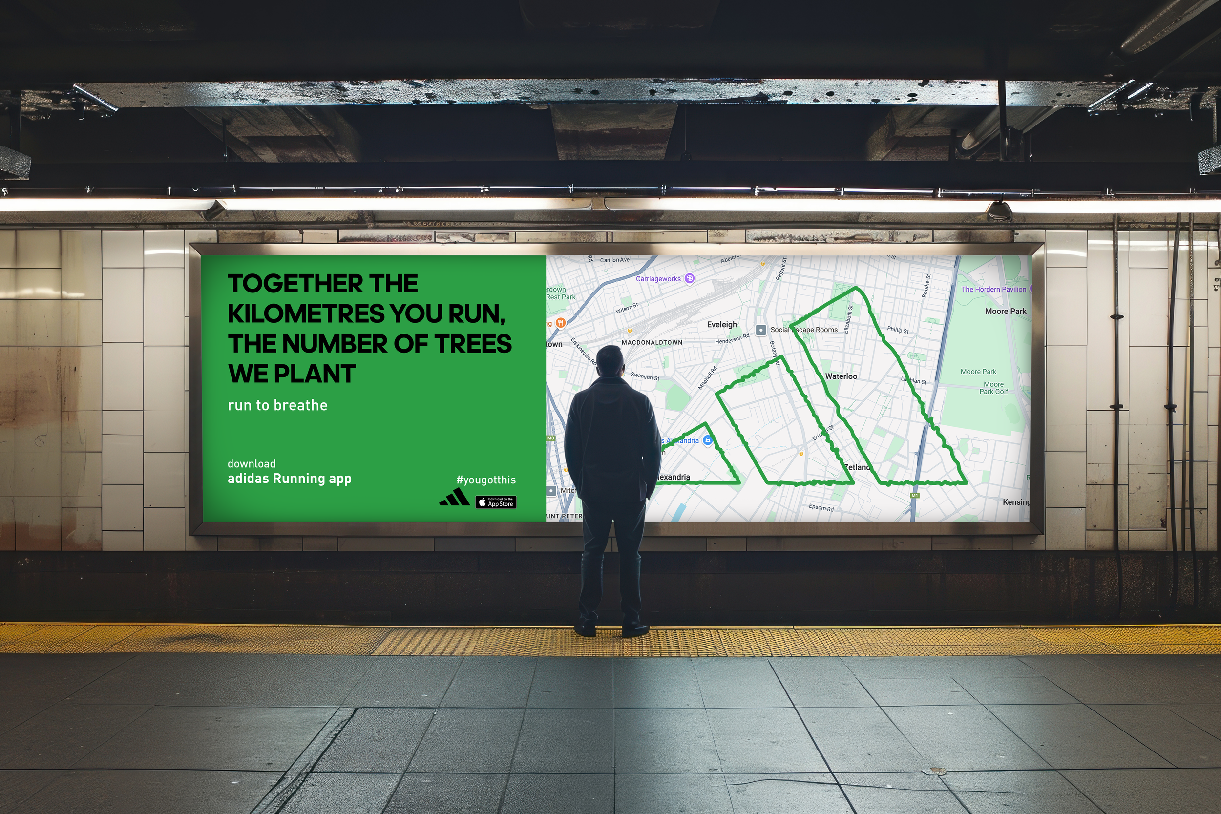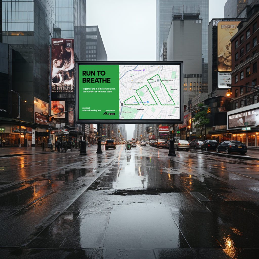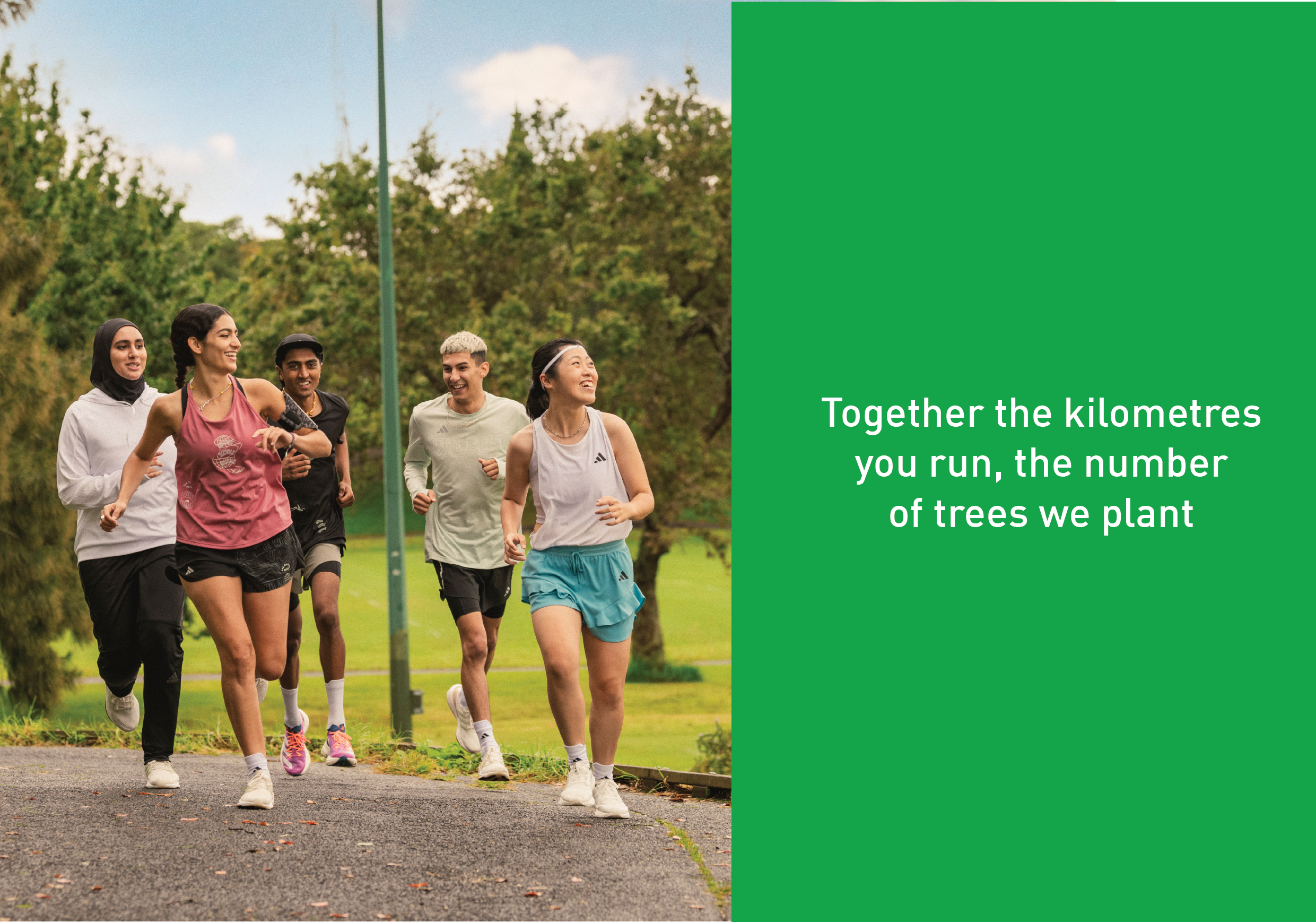 By running together using the adidas Running app, the kilometers users run will turn into the number of trees Adidas plants.