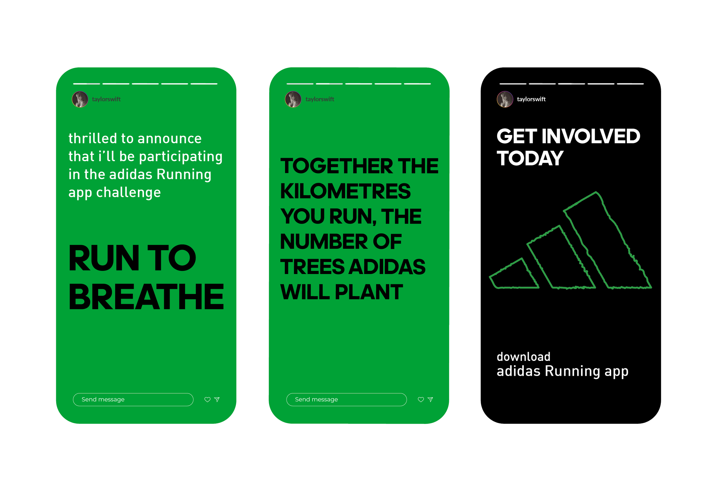 We have designed social media posts to promote Run to Breathe, in partnership with highly influential and environmental activists Leo Messi and Taylor Swift.